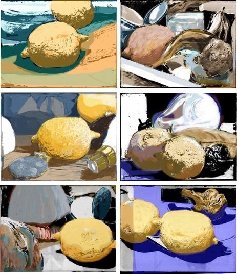 Clichés-verre colorisés  (tirages numériques) 12 x 24 cm chaque. 2000