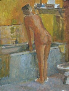 Salle de bain. Huile sur carton. 30 x 45 cm. 2002