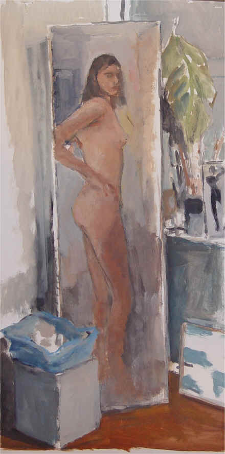 Nu dans le miroir2. Huile sur papier. 95x65 cm. 2001-2002