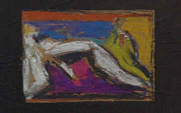 Pietà - Éperon . Huile sur bois. 45 x 12 cm. - Étude (fond noir). Pastel sur bois. 25 x 12 cm. 1989