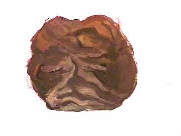1998. 75 pommes d'août (détail). Huile sur papier. 30 x 30 cm.