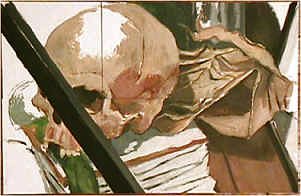 Crâne et papier froissé. Huile sur papier. 45 x 30 cm. (collection particulière). 1996.