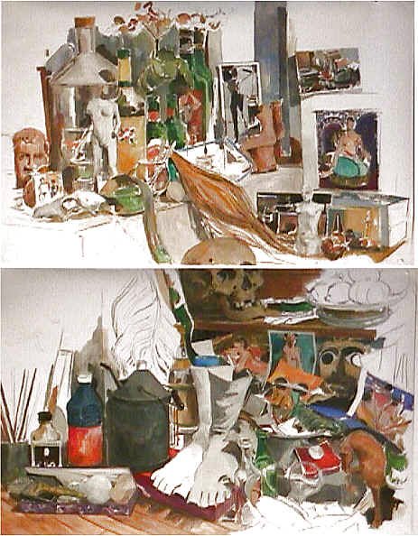 Grand atelier vertical . Huile sur papier. 150 x 120 cm.