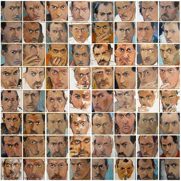 Huile sur papier. 64 peintures de 15 x 15 cm
