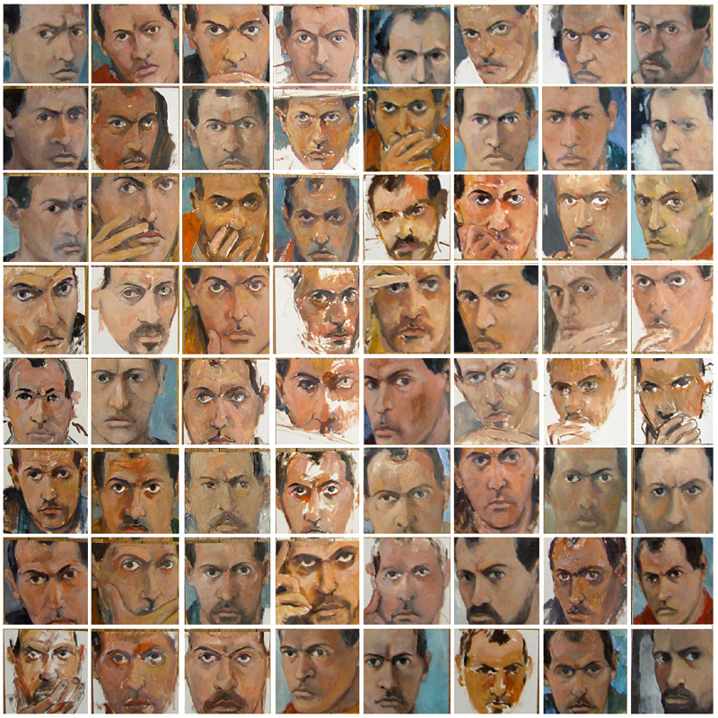 Autoportraits,Huile sur papier. 64 peintures de 15 x 15 cm