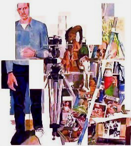 Atelier-figure. Huile sur papier. 150 x 150 cm.