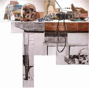 Éclats - La table. Huile et fusain sur papier. 150 x 150 cm.