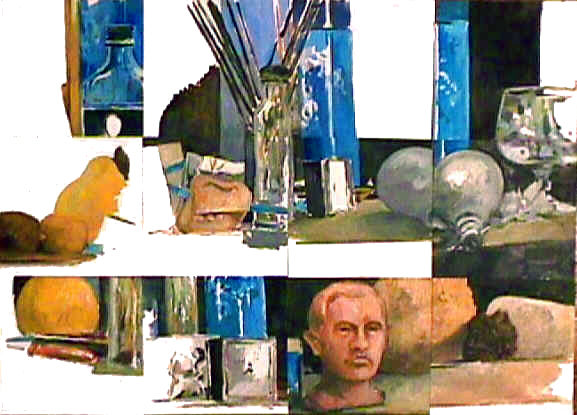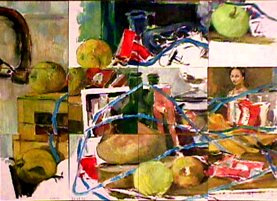 Le ruban . Huile sur papier. 60 x 45 cm. 1996 - ...................................Flacon bleu . Huile sur papier. 60 x 45 cm.1997. |