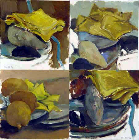 Fragments recomposés au carré. Huile sur papier. 30 x 30 cm.