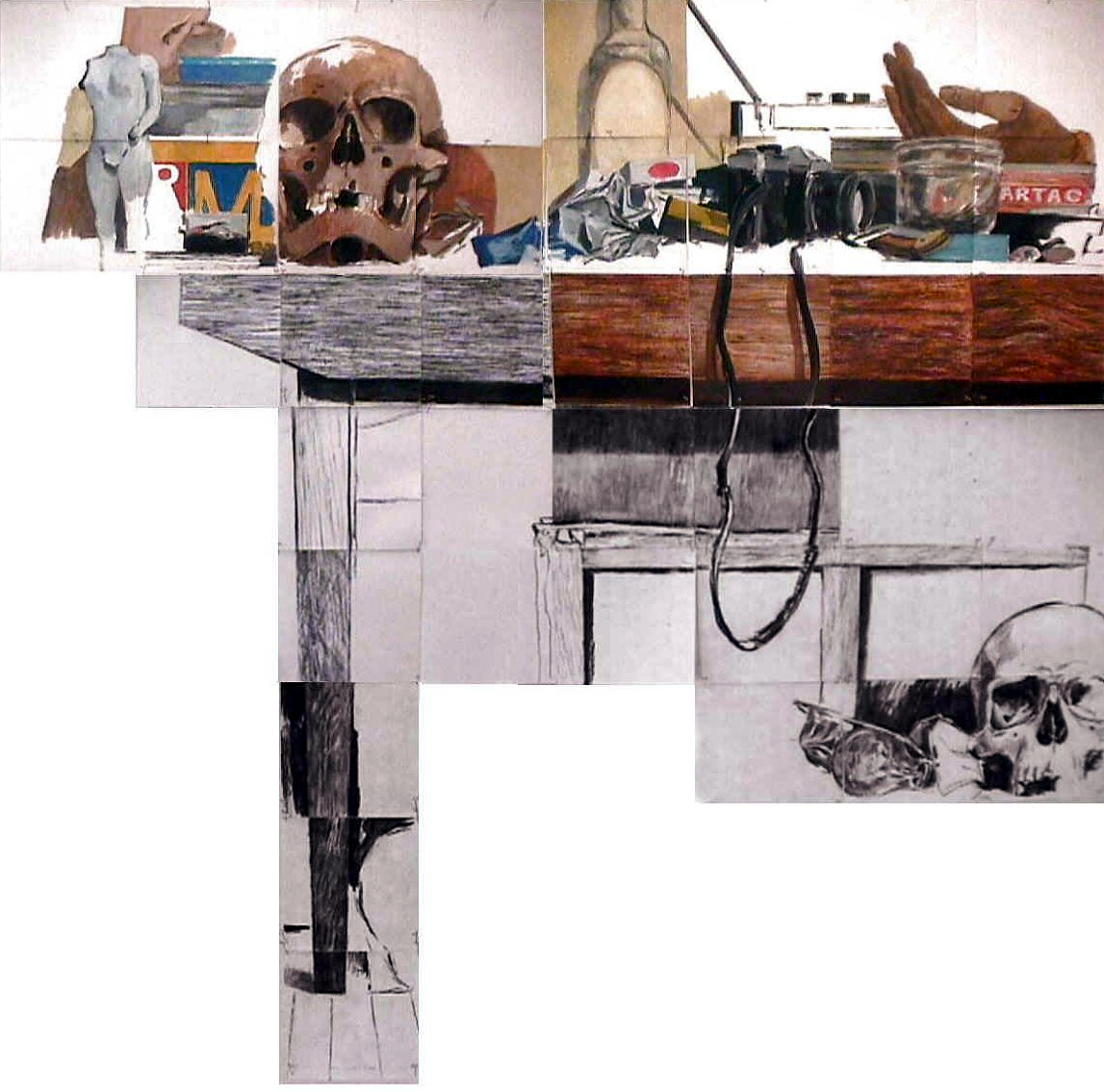 La table. Huile et fusain sur papier. 85x85 cm. 2001