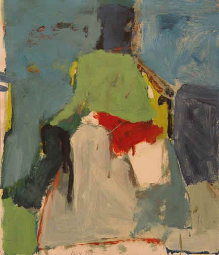 L'assise. Glycéro et huile sur papier. 85 x 45 cm.1986.
