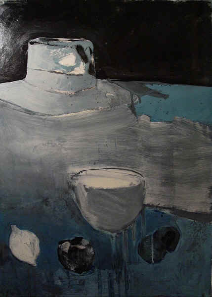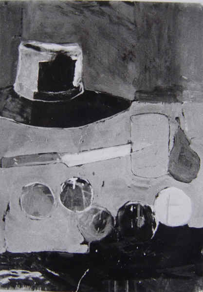 Chapeau, bol, fruits. Huile sur papier. 100 x 50 cm.1987 - Chapeau, bol, fruits. Huile sur papier. 100 x 50 cm.1987.