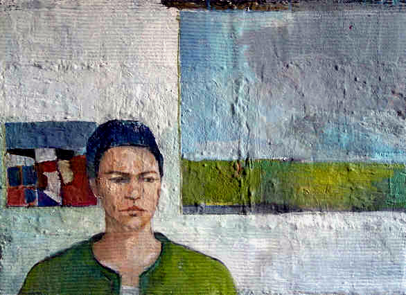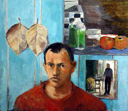 1992. Le foulard bleu. Huile sur bois. 75 x 45 cm.----1992. 2 feuilles. Huile sur bois. 75 x 45 cm.
