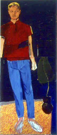 (Gilles) Pieds nus sur le tapis. Huile sur toile. 150 x 85 cm.1987. |