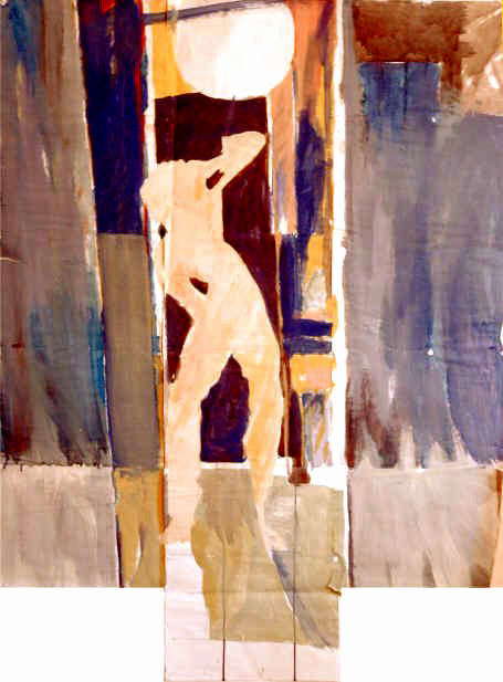 | "Les premiers sujets que j'ai représentés étaient centrés autour de la figure, et plus particulièrement du corps. Je puisais mon inspiration, à cette époque, dans un album de photographies familiales." "Puis j'ai éprouvé le besoin de faire mes propres photos qui ont servi de support à ces images. Pourtant quelque chose me gênait, que j'attribuais aux effets de lumière trop contrastés de ces clichés dont je m'inspirais et qui ne me permettaient pas de travailler sur la notion de profondeur." Début 86, je réalisais une série de photographies