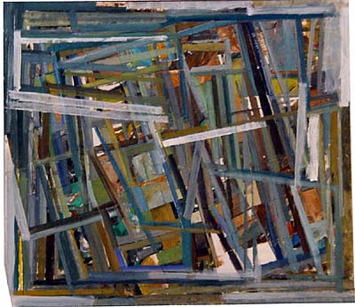 Réseau sur chutes. Huile sur papier et collage. 50 x 60 cm. 2001.