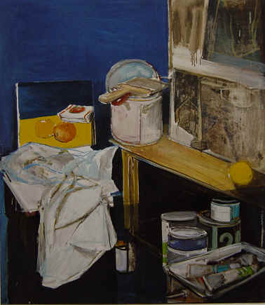 Atelier (coin bleu). Huile sur toile. 125 x 100 cm.