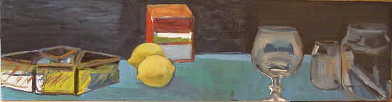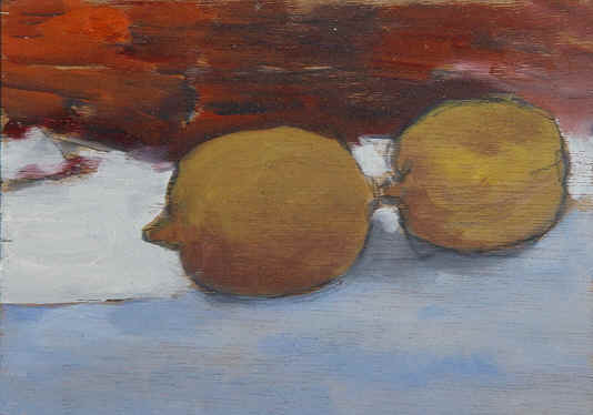 1992. Étude en long. Huile sur bois. 50 x 10 cm. - 1993. Deux citrons. Huile sur toile. 10 x 15 cm.