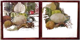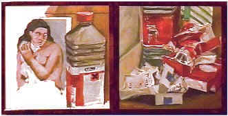 1996. Duo . Huile sur papier. 60 x 30 cm.