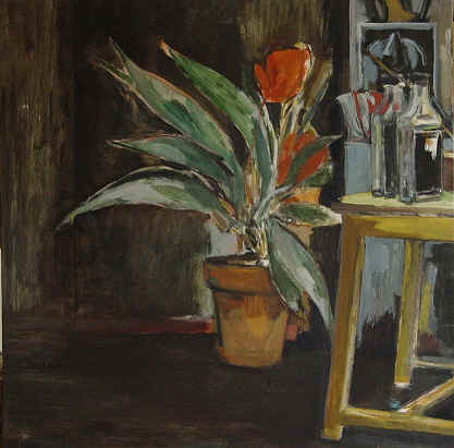 1989. Plante. Huile sur toile. 100 x 100 cm - 1990. Atelier rouge. Huile sur toile. 100 x 100 cm