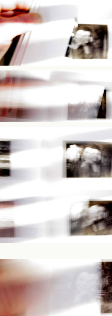 > notes sur clichés (photo revisitée) 35/ Au tournant de la page je tombe en arrêt devant la beauté dédoublée de cette jeune femme. Pourtant le redoublement de ce portrait, évoque une anomalie, une difformité qui, en d'autres temps, aurait mérité de figurer dans un numéro de la foire du trône. Etrange paradoxe que celui du beau et du monstrueux que cette prise de vue accidentelle a ainsi réuni. Ces deux jumelles siamoises par hasard affichent un sourire tranquille et coquin me laisse pantois. Cherchant à comprendre, je m'égare dans la zone floue qui suture ce double visage. Je m'étonne que le fond (l'arrière plan de cette chambre) n'ai pas subi la moindre trace de superposition, car il y a bien deux images superposées: deux fois le même visage et deux fois la même pièce. Je ne saurais dire pourquoi mais je me retrouve quelques années en arrière sur un pont du Tibre, à Rome, de nuit. Je filme une sculpture à deux visages dont j'appendrais plus tard, en consultant un livre, qu'il s'agit de Janus. " Cette divinité romaine veillait sur les ouvertures : ouverture de l'année, de la guerre (les portes de son temple étaient fermées quand Rome était en paix), etc… Saturne, qui fût son hôte et son allié, le doua d'une rare prudence qui rendait le passé et l'avenir toujours présents à ses yeux, ce que certaines représentations ont exprimé lui donnant deux visages tournés en sens contraires. ". L'article spécifiait encore que " le mois de janvier (januarius), était associé à ce nom ", or c'était précisément le 1er janvier 2000 que j'avais enregistré cette bande vidéo. Machinalement, ma main fait glisser la page de gauche sur la quelle se trouve des cages d'oiseau. Je me demande pourquoi ces cages sont associées à ce double visage. Quel rapport ? Qu'est-ce qui a décidé les auteurs de ce livre à rapprocher ces deux images ? Bien sûr, la cage pour les monstres, les gorilles et autres espèces bestiales serait une réponse raisonnable mais je n'ai pas envie de verser de ce côté. La page de gauche glisse sous mes doigts jusqu'à toucher l'image de la page droite. Ce contact me fait voir que dans la chambre où se tient cette jeune femme, se trouve un miroir sous le quel sont alignés des flacons. Contre toute attente c'est là que je situe la jonction : dans le pli de la page se retrouve l'équivalent du portrait.