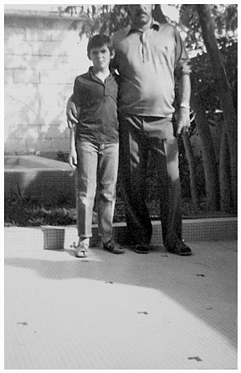 > notes sur clichés (photo revisitée) 66/ Le reflet du livre face à l'écran me renvoie une fois encore au souvenir d'autres images. Rétroviseur. Par exemple cette photographie prise par ma mère avec le petit Insta-matic kodak que venait de m'offrir mon frère (l'ombre portée sur le carrelage est justement celle de mon frère Serge). Elles sont rares les photos où je suis avec mon père et, malgré le cadrage coupant au niveau de son regard - cadrage dont j'ai toujours pensé qu'il s'agissait d'un acte manqué - j'ai conservé ce cliché… Surtout pour ses mains. Je remarque maintenant les plis sur les pantalons et l'aspect froissé sur le bas de mon polo. D'un coup, ça me revient : ma mère m'avait demandé de " m'arranger un peu " et que " le polo serait mieux dehors… ". Pour quelle raison avait-elle formulé ce souhait ?... Je crois que je n'en sais toujours rien, mais visiblement j'avais obtempéré. |