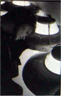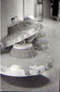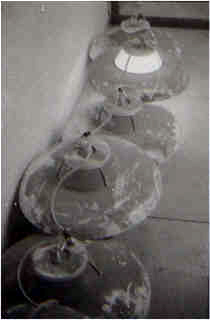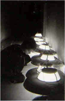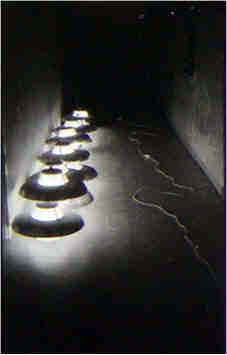 (Lampes disposées au sol dans un couloir de la Faculté de lettres)