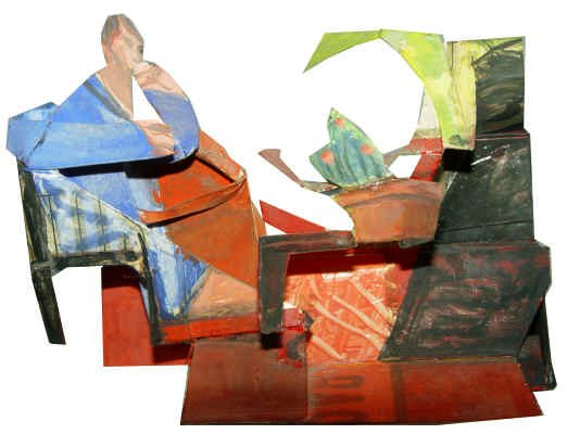 1991. Figure assise et plante. Papier plié, peinture. 15 x 6 cm